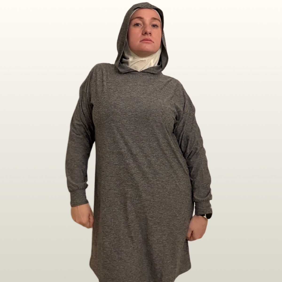 Modest Movement Coord Set – Hooded Top + Relaxed Workout Pants in Gray - XS/S / XS/S