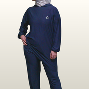 Modest Movement Coord Set – Hooded Top+ Relaxed Workout Pants in Navy - XS/S / XS/S